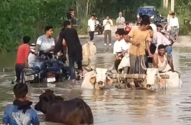 मुंबई, 11 अगस्त, (न्यूज़ हेल्पलाइन)। उत्तर प्रदेश और बिहार में लगातार हो रही तेज बारिश ने हालात बिगाड़ दिए हैं। बिहार के सात जिले बाढ़ की चपेट में आ गए हैं, जिससे करीब 10 लाख लोग प्रभावित हो चुके हैं। गंगा समेत राज्य की दस नदियां खतरे के निशान से ऊपर बह रही हैं। अब तक 11 लोगों की मौत हो चुकी है, जबकि पटना जिले की 24 पंचायतें पानी से घिरी हुई हैं। उत्तर प्रदेश में भी नदियां और नाले उफान पर हैं। मुरादाबाद में रामगंगा नदी में बह गए एक बाइक सवार ने 22 घंटे तक एक पेड़ पर बैठकर अपनी जान बचाई, जिसे बाद में रेस्क्यू किया गया। बीते 24 घंटे में राज्य के 54 जिलों में औसतन 5.9 मिमी बारिश दर्ज की गई है। बुलंदशहर के अहार इलाके में गंगा के तेज बहाव में सिद्ध बाबा गंगा घाट का गंगा मंदिर, हनुमान मंदिर, गुरु गोरखनाथ मंदिर, जाहरवीर बाबा मंदिर और तीन धर्मशालाएं बह गईं। फर्रुखाबाद में बाढ़ का पानी 40 गांवों में घुस गया है, जबकि महराजगंज और देवरुआ में कोबरा देखे जाने की घटनाएं सामने आई हैं। बुलंदशहर में 10 फीट लंबा अजगर बिजली के खंभे पर चढ़ गया।