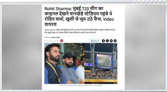 जांच के दौरान न्यूज नेशन की एक रिपोर्ट में यही फुटेज मिला, जहां बताया गया कि यह वीडियो मुंबई टी20 लीग के फाइनल का है, जो वानखेड़े स्टेडियम में खेला गया था। उस समय रोहित शर्मा वहां बतौर दर्शक पहुंचे थे और कैमरे में कैद हुए थे।