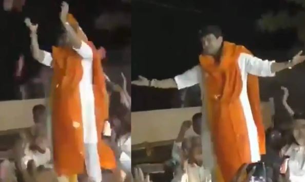 रोड शो के दौरान अचानक गाड़ी पर खड़े होकर नाचने लगे सिंधिया, देखिए वीडियो