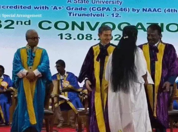 मुंबई, 13 अगस्त, (न्यूज़ हेल्पलाइन)। तमिलनाडु की मनोनमनियम सुंदरनार यूनिवर्सिटी (MSU) में बुधवार को आयोजित 32वें दीक्षांत समारोह के दौरान एक अलग तरह का वाकया सामने आया। कार्यक्रम में मुख्य अतिथि के तौर पर मौजूद राज्यपाल आरएन रवि सभी पासआउट छात्रों को डिग्री प्रदान कर रहे थे, लेकिन DMK के नागरकोइल डिप्टी सेक्रेटरी एम. राजन की पत्नी जीन जोसेफ ने राज्यपाल के हाथ से डिग्री लेने से मना कर दिया और उनकी जगह कुलपति से डिग्री प्राप्त की। यह घटना उस समय हुई जब जीन जोसेफ मंच पर डिग्री लेने पहुंचीं। राज्यपाल रवि मुस्कुराते हुए उन्हें पास आने का संकेत देते दिखे, लेकिन उन्होंने नजरअंदाज करते हुए सीधे कुलपति के पास जाकर डिग्री ली और “थैंक यू” कहा। जवाब में राज्यपाल ने सिर हिलाकर प्रतिक्रिया दी। इस घटना का वीडियो सोशल मीडिया पर वायरल हो गया है।
